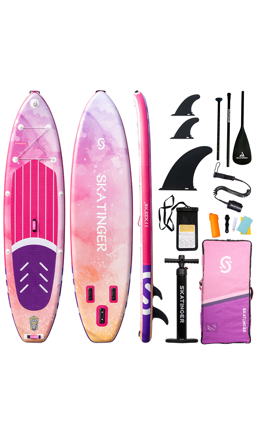 Constructed using a single-layer drop-stitch core and finished with a textured EVA pad, Rapunzel remains lightweight yet firm underfoot. Its 375 L volume and stable platform make it beginner-friendly, while the soft color palette turns every session into a visual escape.