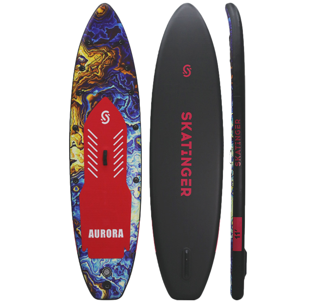 Inspired by the celestial beauty of the northern lights, the Aurora Red SUP board turns every paddle into a cosmic experience. With swirling patterns of color and a bold red grip deck, this board is made for explorers who follow their own path. It’s equally at home on glassy lakes, calm seas, or winding rivers, offering stability, performance, and personality with every glide.