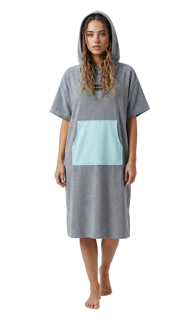 Surf pončo – sivi nije samo ručnik – to je vaša osobna mobilna kabina za presvlačenje. Dizajniran za maksimalnu praktičnost, ovaj pončo s kapuljačom pruža privatnost, toplinu i udobnost tijekom presvlačenja na otvorenom. Bilo da surfate, plivate, kampirate ili putujete, pončo vas održava suhima, pokrivenima i spremnima za sljedeći korak.