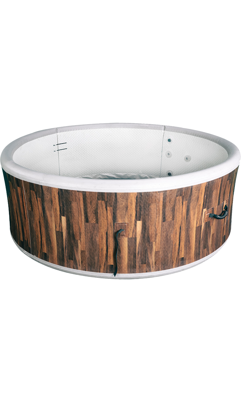 Zahvaljujući konstrukciji pod visokim tlakom, bazen zadržava čvrste bočne stijenke i stabilnu podlogu, a pritom ostaje lagan i jednostavan za premještanje. Vanjski izgled s drvenim uzorkom daje prirodnu estetiku, dok unutarnja obloga i ergonomska visina osiguravaju udobnost za odrasle i djecu.