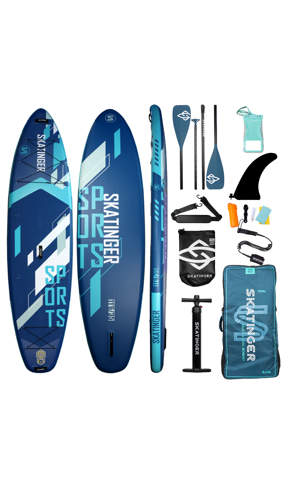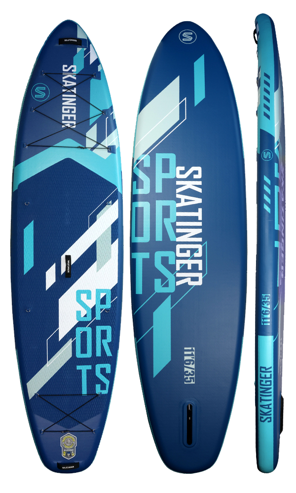 Napuhujuća SUP daska Blue Sports brenda Skatinger osmišljena je za svestranu upotrebu i pouzdane performanse – savršena za fitness, jogu, lagani touring ili opušteno rekreativno veslanje. S izdašnom duljinom od 350,5 cm i širinom od 89 cm pruža iznimnu stabilnost i kontrolu, čak i početnicima ili teže građe.