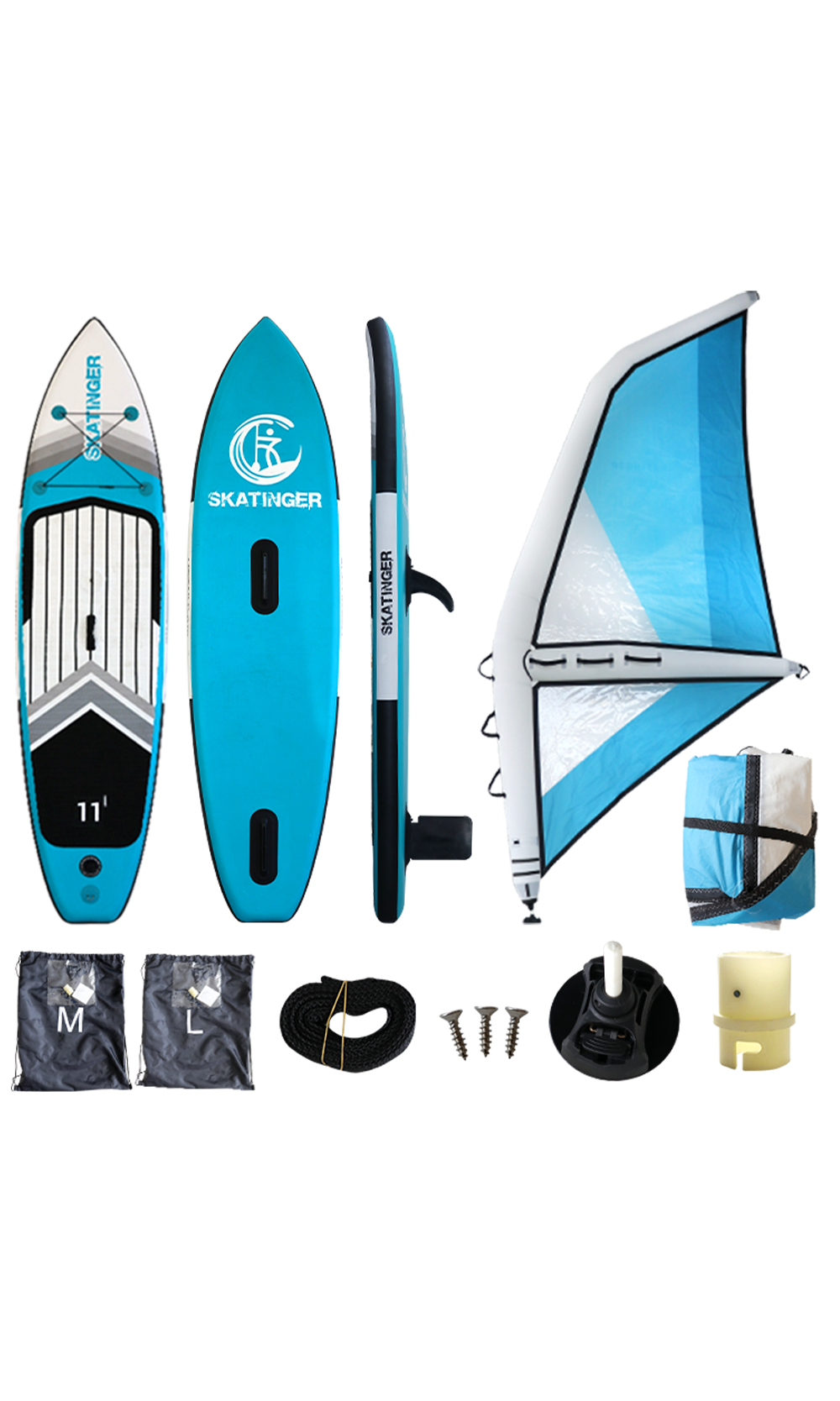 Skatinger i-Rocker napuhujuća windSUP daska spaja slobodu veslanja s uzbuđenjem windsurfinga. Opremljena mekanim jedrom površine 4.2 m², ova hibridna daska savršena je za sve koji žele lako prelaziti između veslanja i kretanja uz pomoć vjetra.