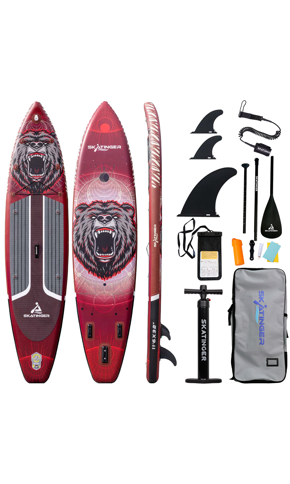 Touring SUP daska Bear brenda Skatinger razvijena je za veslače koji žele upečatljiv dizajn i uravnotežene performanse. S duljinom od 350.5 cm i širinom od 81.3 cm nudi snažnu kombinaciju brzine, udobnosti i kontrole – idealnu za touring, fitness ili siguran napredak na otvorenoj vodi.