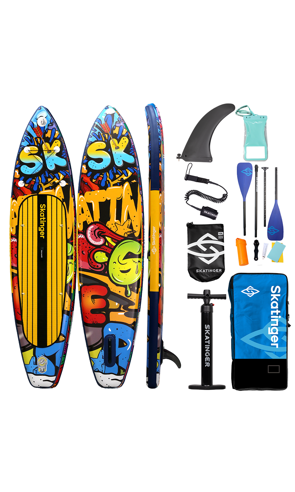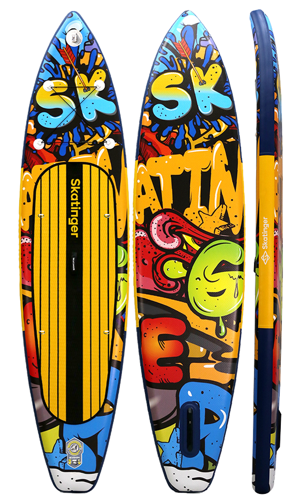 Graffiti Yellow SUP daska spaja urbani stav s vrhunskim touring performansama. Duljine 350,5 cm i širine 81 cm, ova daska nudi izvrsnu ravnotežu brzine i stabilnosti – savršena za veslače koji se žele istaknuti dok klize zaljevima, rijekama ili jezerima. Inspirirana živopisnim muralima i pop-art potezima, stvorena je za one koji prihvaćaju boju, pokret i slobodu.