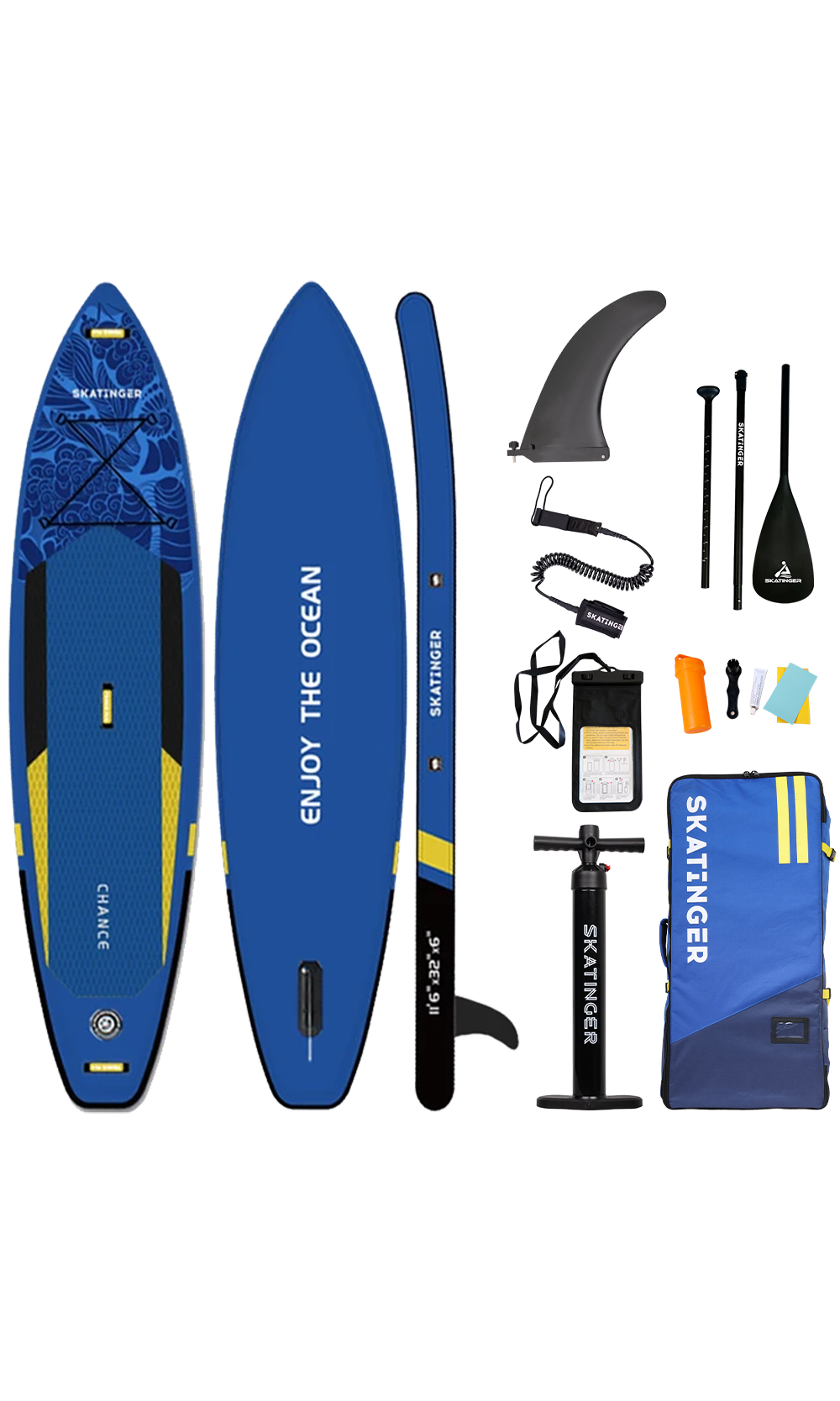 Dimenzijama od 350 cm duljine i 81 cm širine postiže idealnu ravnotežu između klizanja i stabilnosti. Zahvaljujući Fusion dvoslojnoj DROP STITCH + EVA konstrukciji, Chance Blue je izrazito izdržljiva, a pritom dovoljno lagana za samostalno rukovanje. Dolazi s kompletnim setom dodatne opreme za bezbrižno touring iskustvo – od vodonepropusne torbe i leash-a do futrole za mobitel i podesivog vesla.