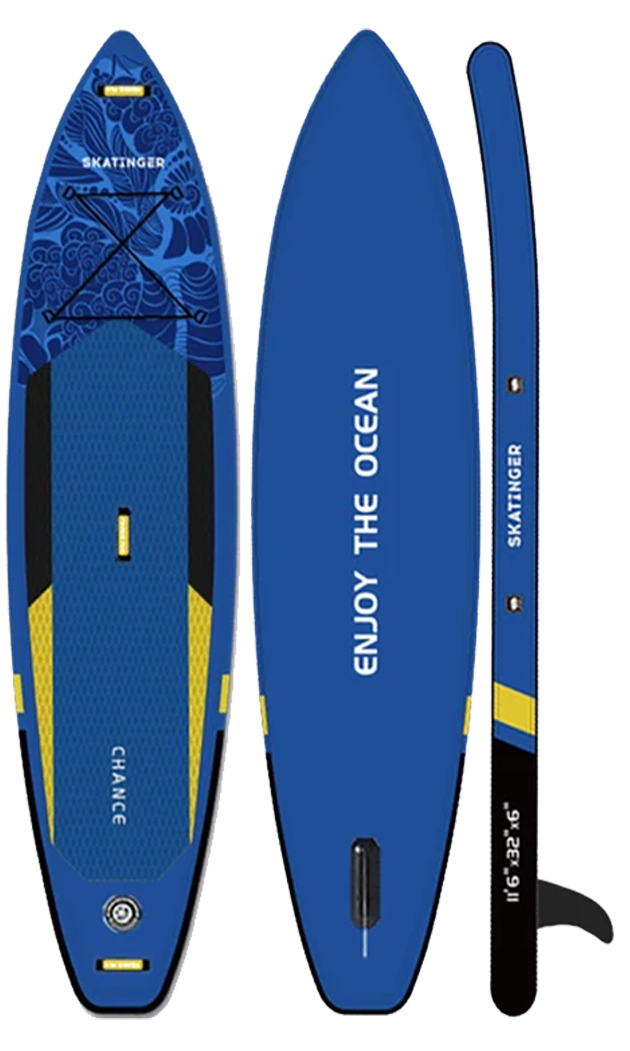 Chance Blue touring SUP daska stvorena je za veslače koji cijene izdržljivost, protočnost i čist dizajn. Duboki oceanski plavi tonovi, geometrijski detalji i snažna silueta pružaju kontrolu, udobnost i sigurnost tijekom duljih dionica i na otvorenijim vodama.