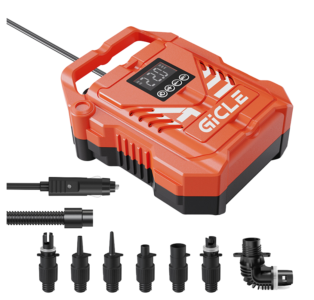 A versatile electric pump featuring an integrated rechargeable battery, perfect for inflating stand-up paddleboards, kayaks, and other inflatables wherever you are. Use it cordless with the built-in battery, or plug it into your car’s 12V socket for unlimited power. Includes a digital pressure gauge, multiple nozzle adapters, and a compact carrying case for easy transport. Ideal for adventurers who need maximum flexibility and portability on the go.
