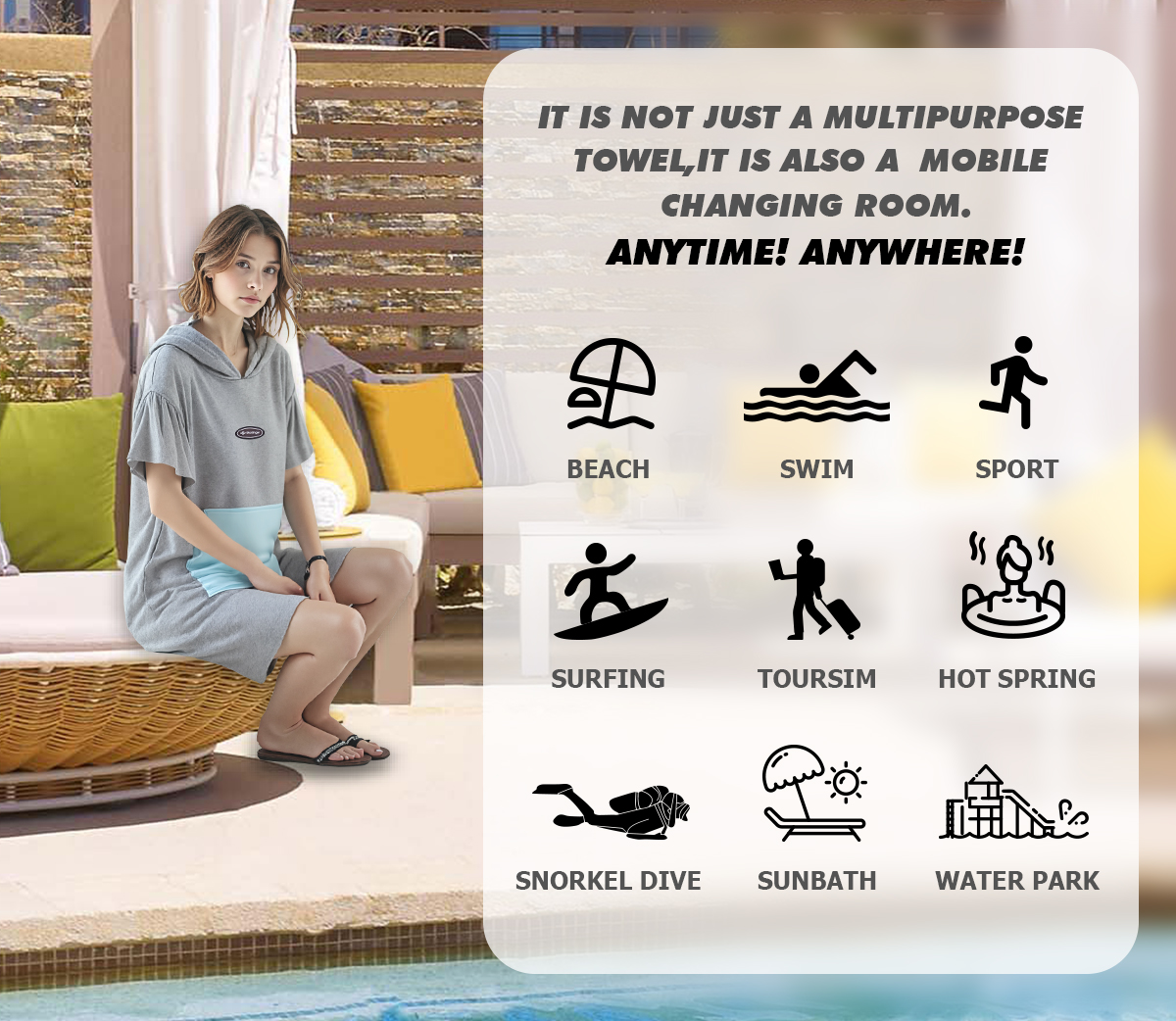 Wherever you go, the Surf Poncho goes with you — offering full-body coverage, comfort, and practicality. Change with confidence — anytime, anywhere.