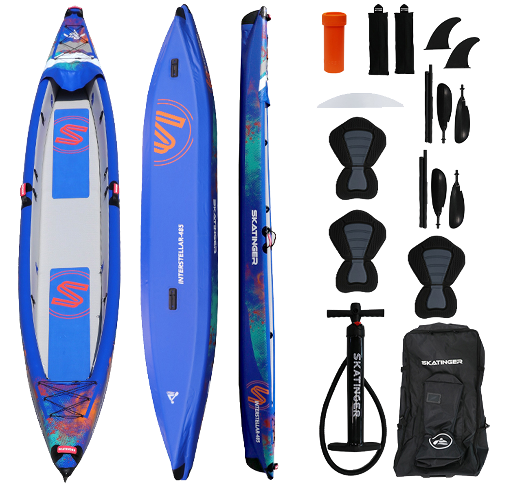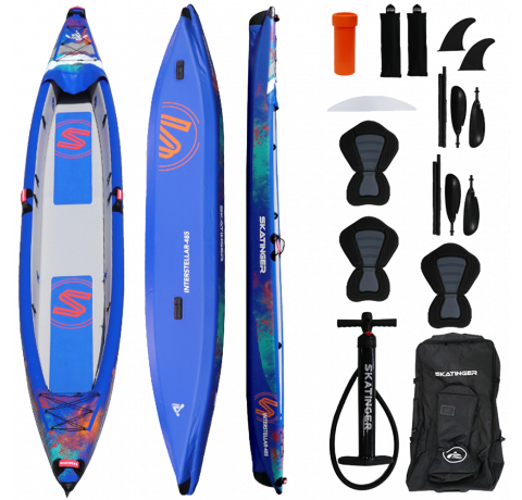 Paddle in comfort and stability with the Skatinger Kayak 410 cm, designed for two-person adventures on lakes, rivers, or coastal waters. With a reinforced inflatable body, spacious cockpit, and premium construction, this kayak delivers exceptional performance for recreational and touring use.