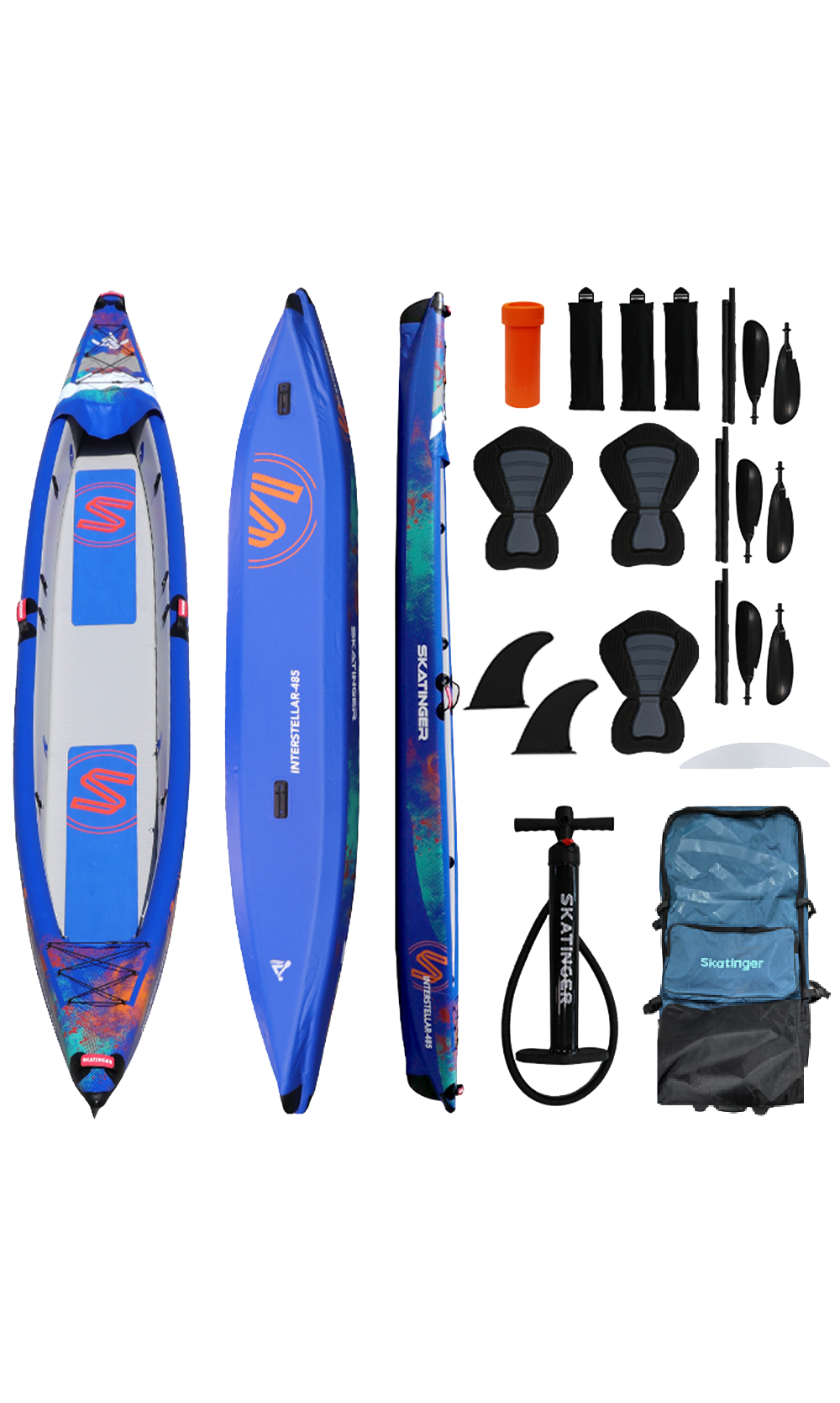 Uživaj u udobnom i stabilnom veslanju uz Skatinger Kayak 485 cm, dizajniran za avanture u troje na jezerima, rijekama ili priobalnim vodama. Ojačano napuhujuće tijelo, prostran kokpit i kvalitetna izrada čine ovaj kajak pouzdanim izborom za rekreativnu i touring upotrebu.