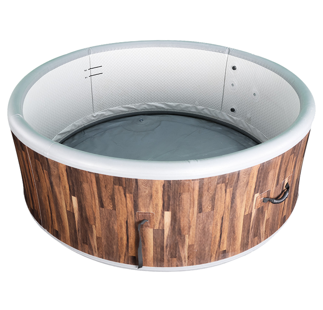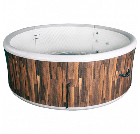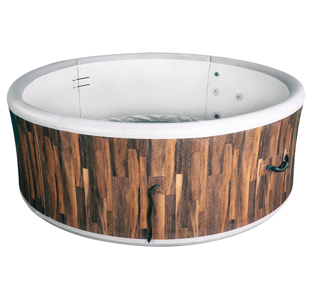 Thanks to its high-pressure construction, the spa maintains firm sidewalls and a supportive base while remaining lightweight and portable. The wood-patterned exterior adds a natural visual appeal, while interior lining and ergonomic height offer comfort for both adults and kids.