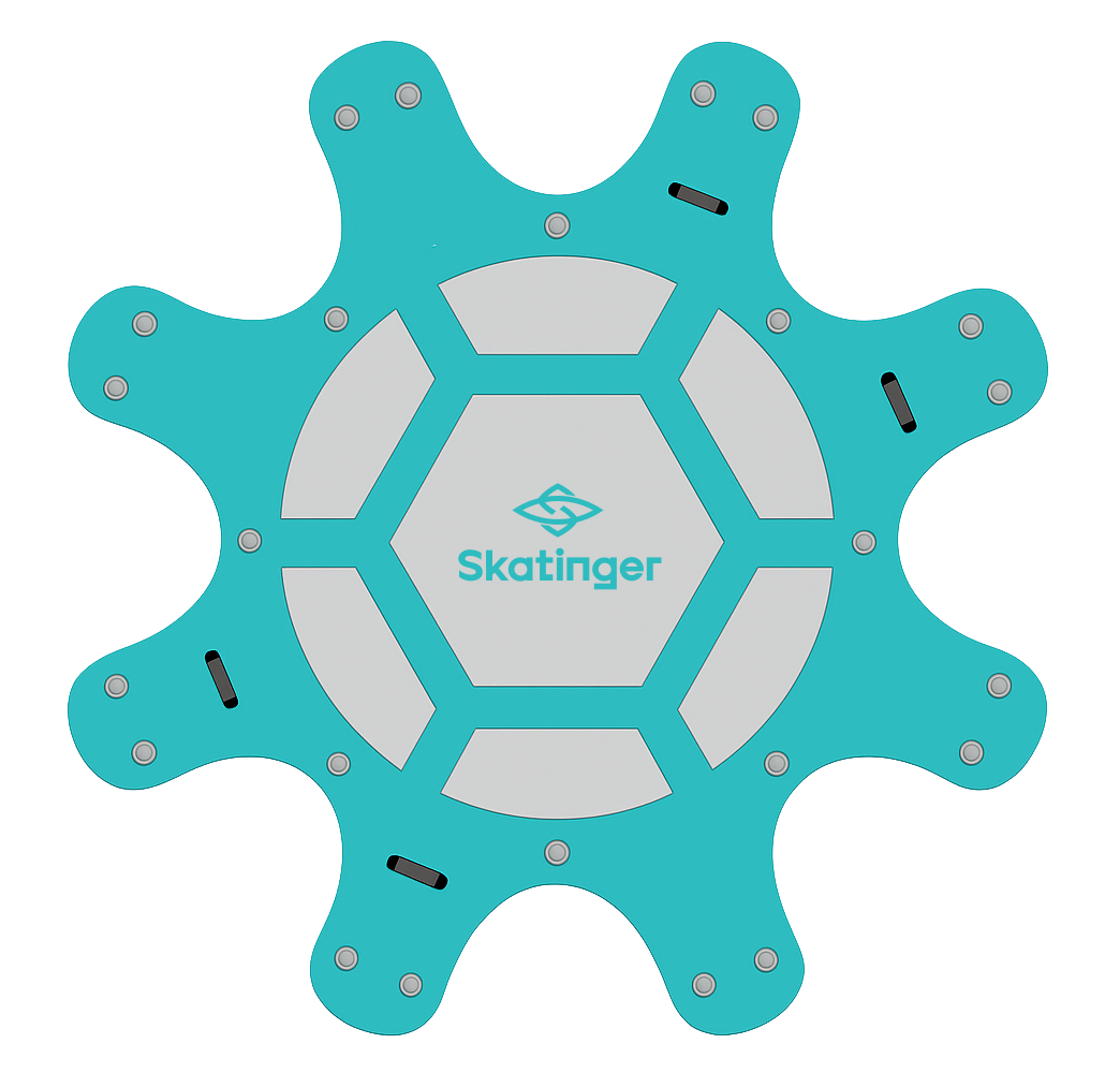 The SKATINGER Yoga Dock is a floating yoga platform designed for group sessions on the water. With a generous outer diameter of 316 cm and inner space of 170 cm, it allows up to 8 SUP boards or yoga mats to dock around the center, creating a communal and harmonious water-based yoga experience.
