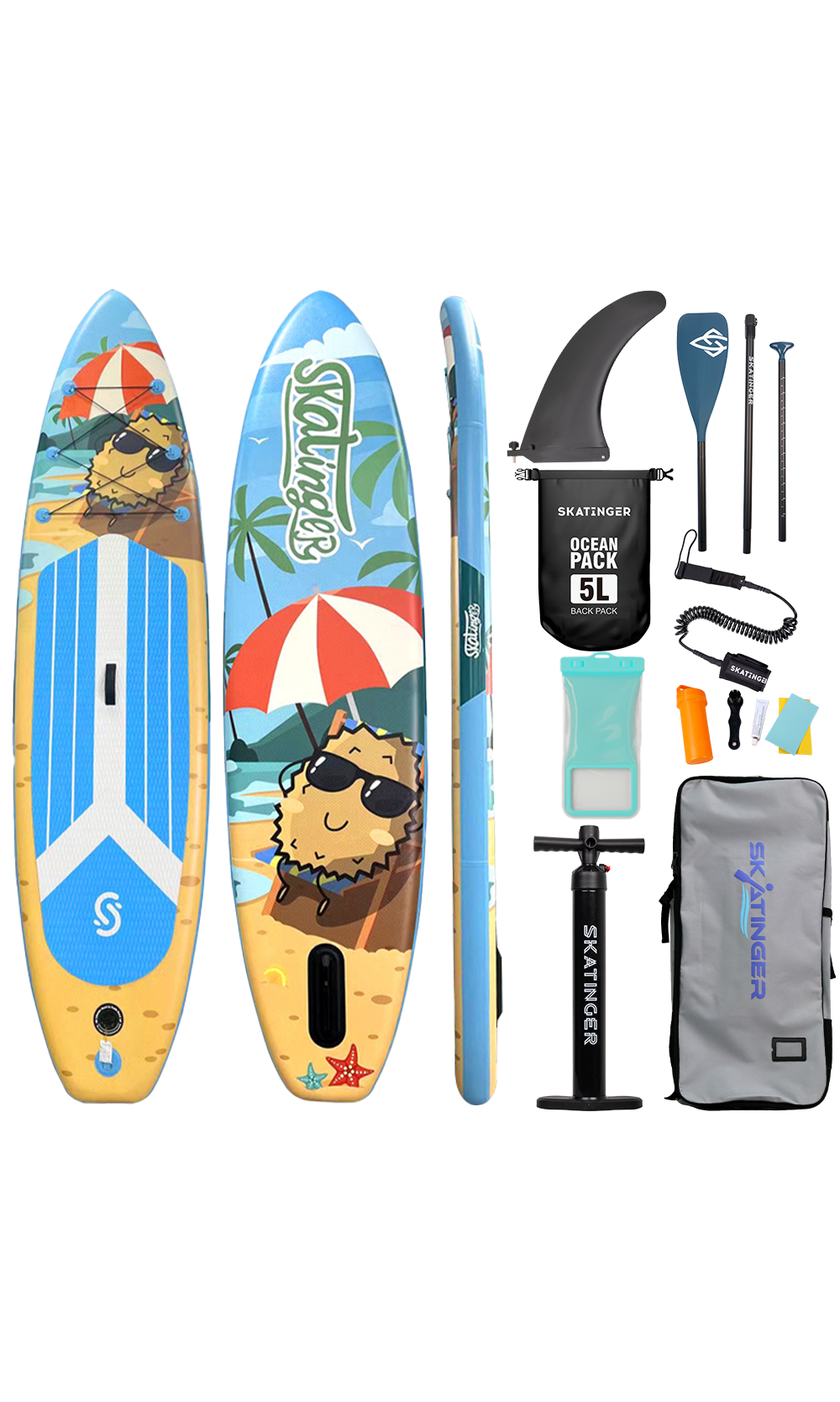 Oslobodi ljetni duh uz Durian SUP – dasku jednako hrabru i vedru kao i voće po kojem je dobila ime. Stvorena za one koji veslaju zbog užitka, povezanosti i boja, Durian se ističe razigranim karakterom i sigurnim ponašanjem na vodi. Bilo da kliziš mirnim uvalama ili se opuštaš na osunčanim obalnim dijelovima, ova daska donosi dozu tropskog stava u svaki trenutak na vodi. Zahvaljujući upečatljivom izgledu i pametnim dimenzijama, savršen je izbor za početnike i rekreativce koji traže laganu, stabilnu i vizualno posebnu SUP vožnju.