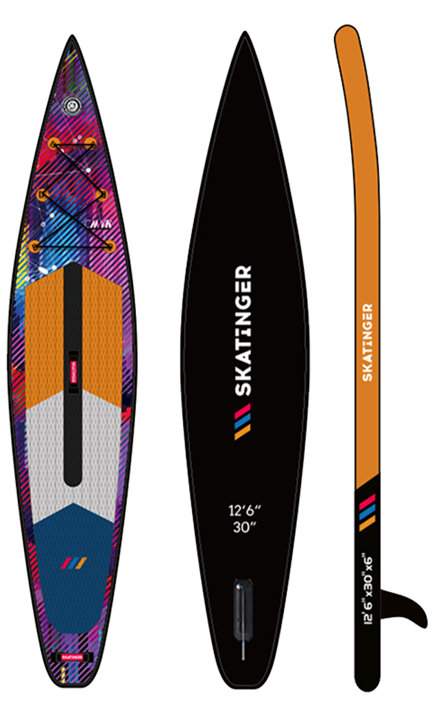Napuhujuća racing SUP daska CMYK Orange by Skatinger spaja visoke brzinske performanse s vatrenim vizualnim identitetom. Dizajnirana za ozbiljne veslače, njezin vitki profil, šiljati nos i dvostruka konstrukcija čine je vrhunskim izborom za race veslanje na mirnim vodama, duge dionice i snažno, fokusirano veslanje.